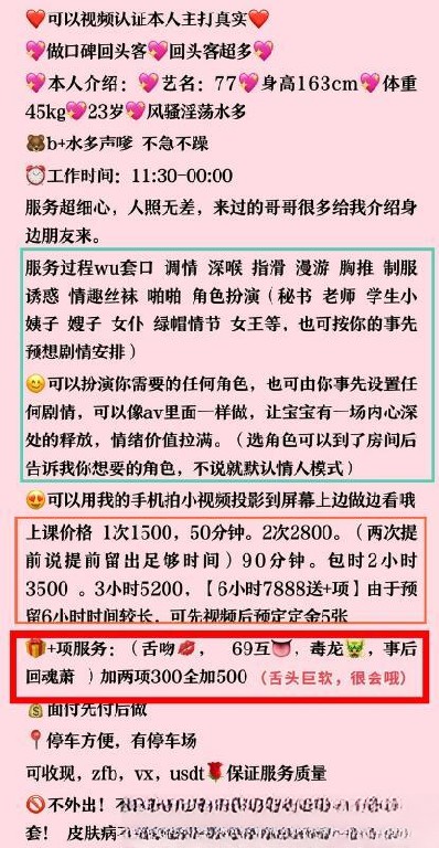 [详细介绍]: 和小姐姐预约的马年第一炮,朋友极力推荐的一直等小姐姐来杭州,先视频认证了是本人,见到本人后太满意了,趁着小姐姐调情时候偷拍两张照片,本人比照片好看,很热情很会聊天,情绪价值很足,活也很好,服务耐心不催,让小姐姐自由发挥就很满足了,超级骚,含着几把一直不舍得吐出来,摸着77的屁股真的很不舍得走呀,真的骚