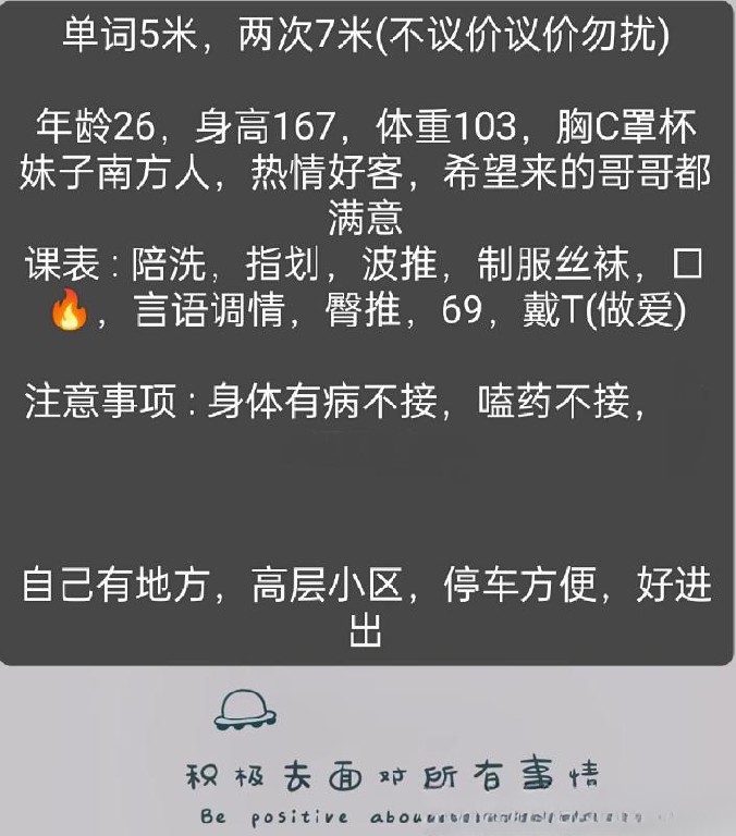 [详细介绍]: 雁塔南郊眼熟楼凤了!课表真实,可靠安全,自租小区高层楼房,进出方便,才刚休假完回来,过年期间也在!单次半小时到四十左右,两次六七十分钟左右,不催不机车,热情姿势配合!喜欢的狼友们,可以多多支持一下