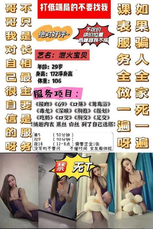 [服务项目]: 鸳鸯浴 艳舞 口爆 按摩深喉 69 大保健 双飞 丝袜制服 舌吻 环游 吹箫